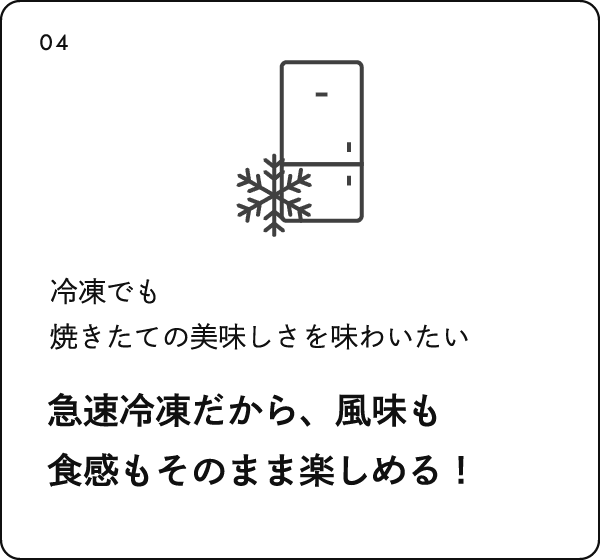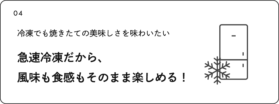 しかも焼きたての風味や食感をそのまま閉じ込めて冷凍しているから、