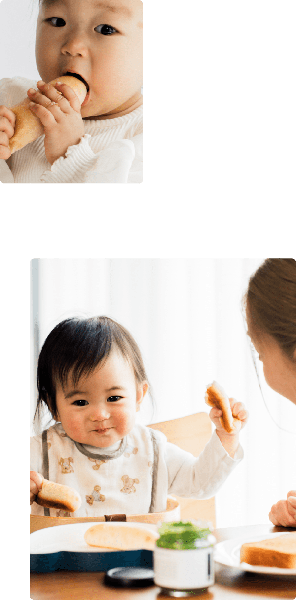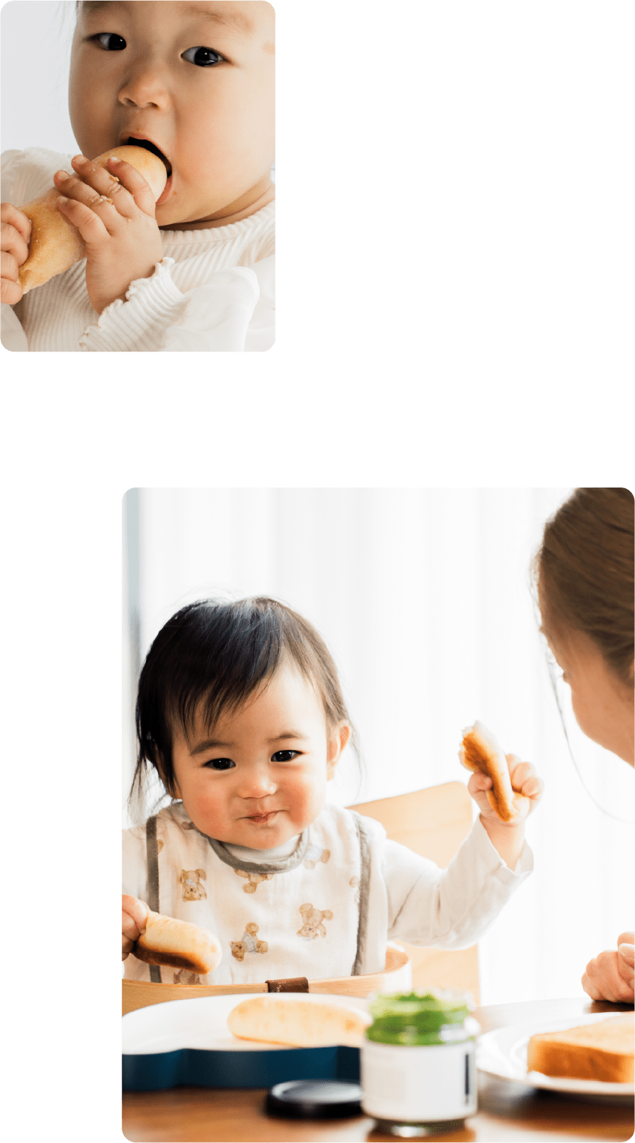 妊娠中でも安心して食べられる、マタニティフード認定のパンです。厳しい基準をクリアし、ママと赤ちゃんのためにやさしい素材で作りました。安心してお召し上がりいただけます。